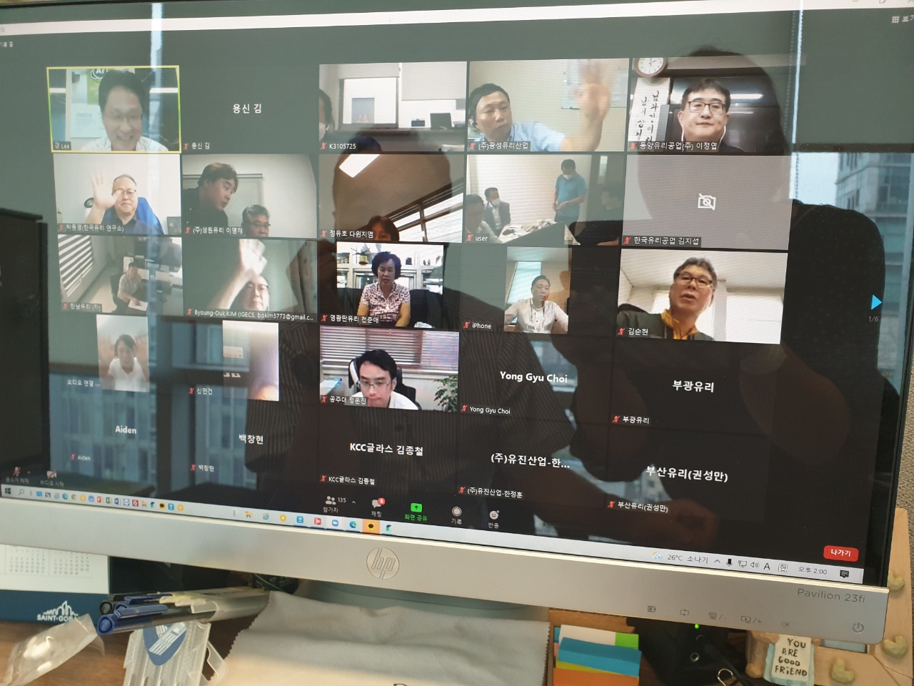 (사)한국판유리창호협회(회장 임형준/이하 협회)는 지난 8월 26일 기능성세라믹R&D 인력양성사업단 유리거점센터와 공동으로 정기 기술세미나를 웨비나(Webinar)로 개최했다. 세미나 당일 회원사 및 참가자들에게 접속코드를 부여해 회의실 및 자기 자리에 있는 컴퓨터나 스마트폰을 통해 전문 클라우드 플랫폼을 제공하는 ‘ZOOM’을 이용해 웨비나에 참석할 수 있었다. 이번 세미나는 판유리산업 관련 종사자 및 학계 참여자까지 약 189명이 시청하며 높은 관심을 보였다.